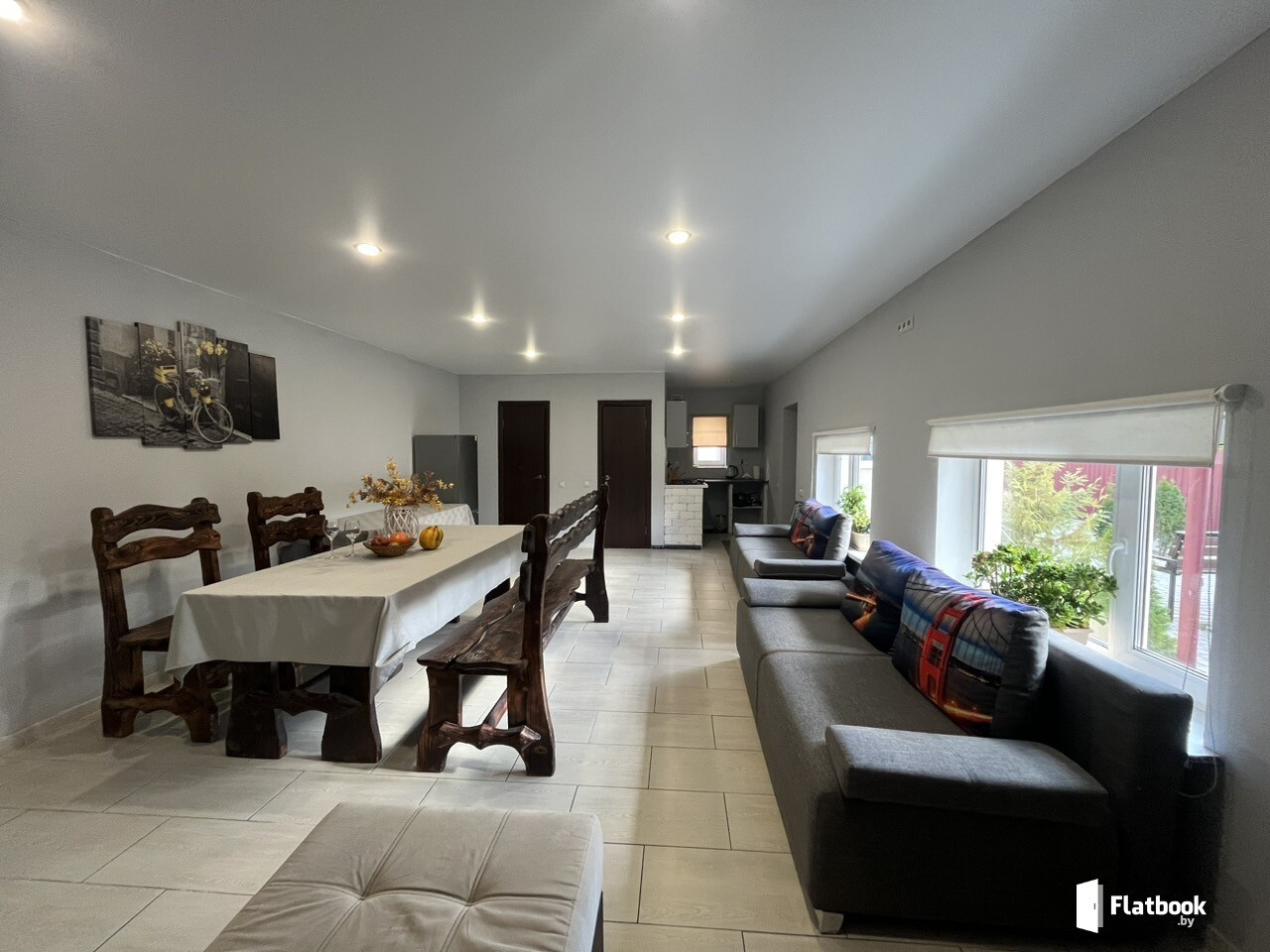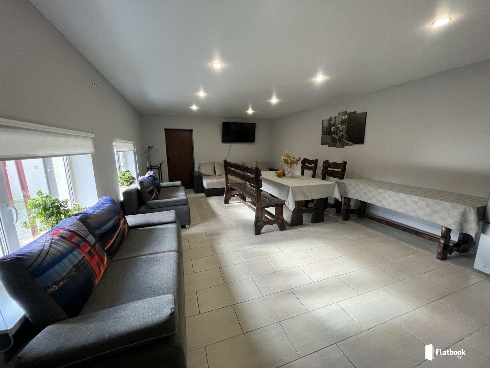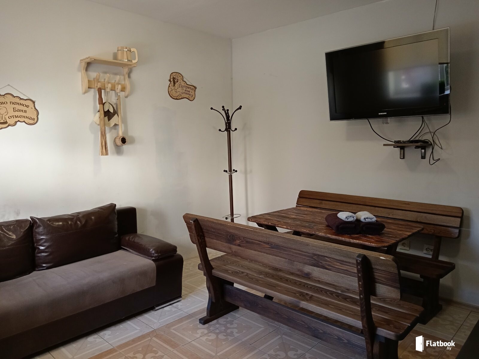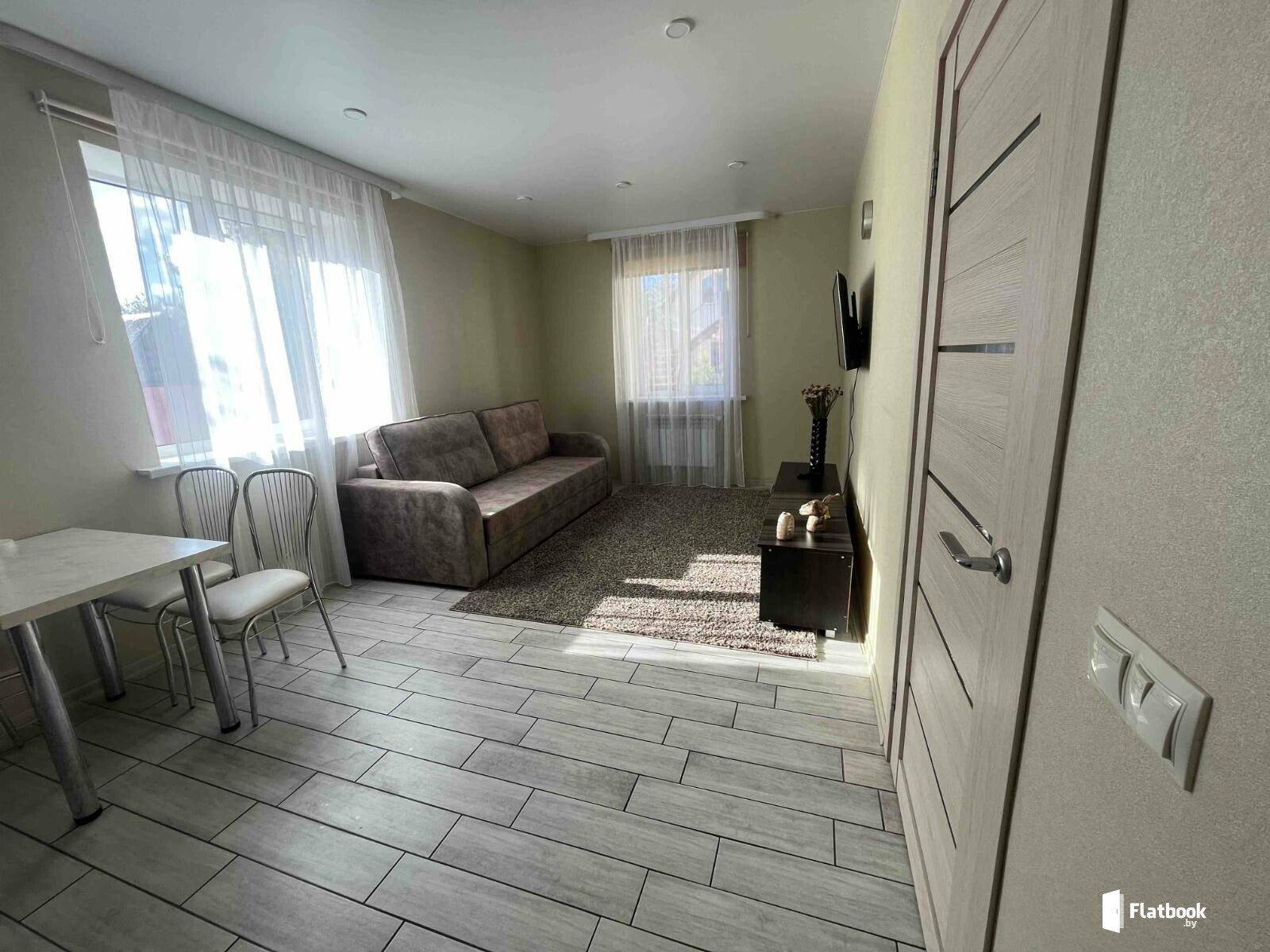 От 40 руб. /человек - в будние дни. В будние дни: от 80 бел. руб за 1 квартиру с 2-х человек в коттедже. В выходные/праздничные дни: от 90 бел.руб за 1 квартиру с 2-х человек в коттедже. Банкетный зал-цена договорная (зависит от дня недели, количества человек и часов) Заселение - после 13.00, выселение до 12.00. Заселим в любое время, если вы в пути.